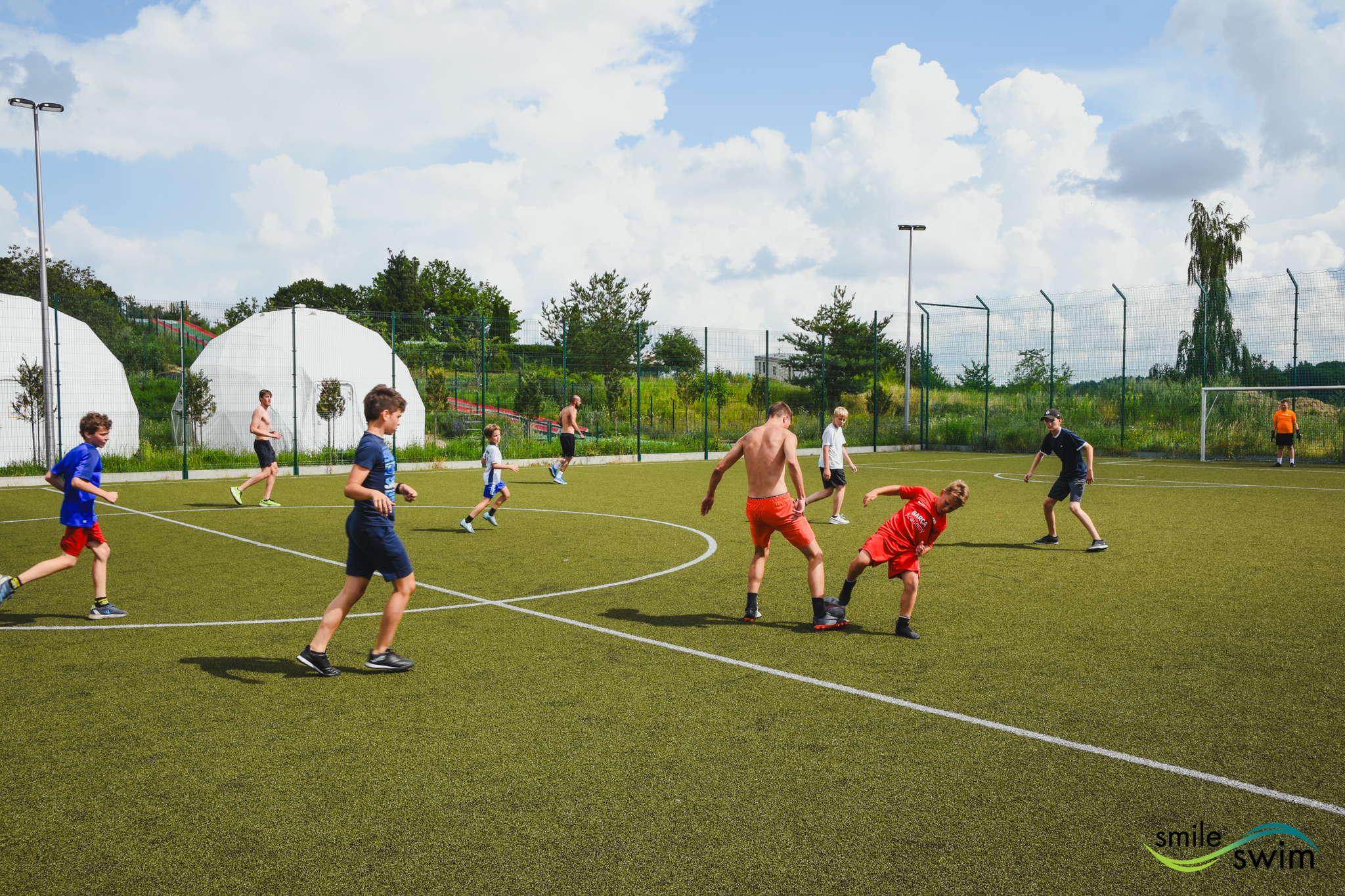 Rano większość obozu ruszyła do twierdzy boyen, gdzie mogli pójść na park linowy lub wodny. Pogoda na wodny była idealna, tak że większość osób wybrała właśnie tę atrakcję! Piłkarze zostali w ośrodku, ponieważ to, co lubią najbardziej, da się robić tylko tutaj, czyli grać w piłkę. 😉 Ale po meczu też chłodzili się w jeziorze!