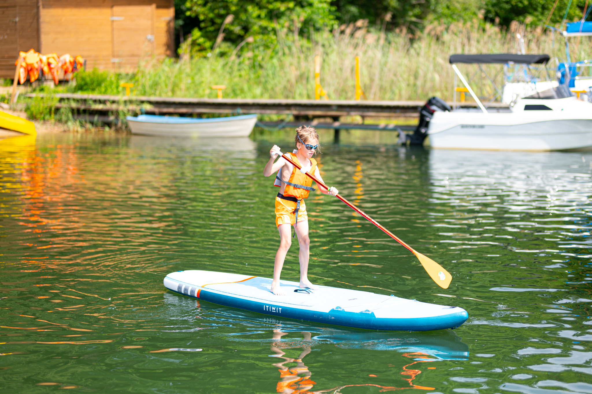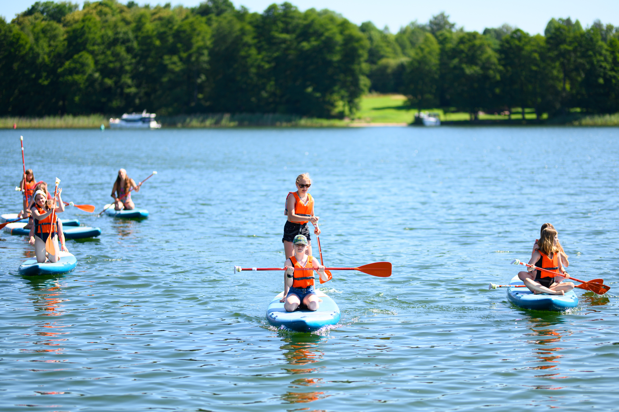 Rano grupy superowe miały do wyboru grę w palanta lub mega pocztówkę. Później obowiązkową kąpiel w jeziorze i SUP-y. ;) Chill od rana też na plaży, gdzie grał w różne gry karciane oraz korzystał z SUP-ów. W tym czasie piłkarze, survival i wielki plusk wybrali się na motorówkę i banana oraz uzupełnić zapasy do większego sklepu. ;)
