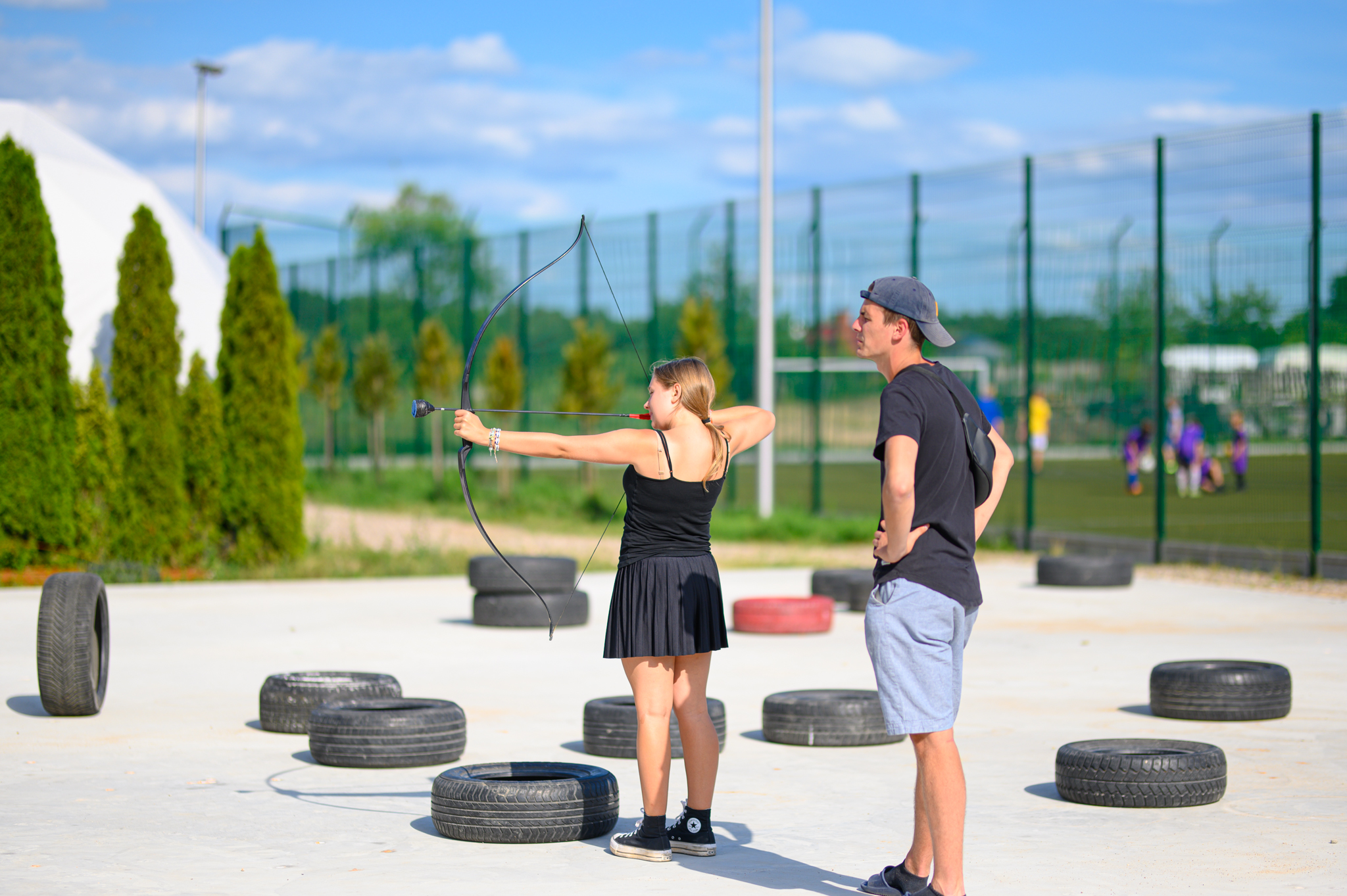 Po popołudniowym porządnym odpoczynku nadszedł czas na obozowe igrzyska. Dzieci zostały podzielone na 3 kategorie wiekowe i rywalizowały w 6 różnych dyscyplinach: bieg krótki, bieg długi, bieg z przeszkodami, bieg przez płotki oraz łucznictwo i pchnięcie kulą. :) Rywalizacja była zacięta! (i tak długa, że jeszcze dzisiaj wieczorem niektóre grupy będą musiały ją dokończyć ;)).