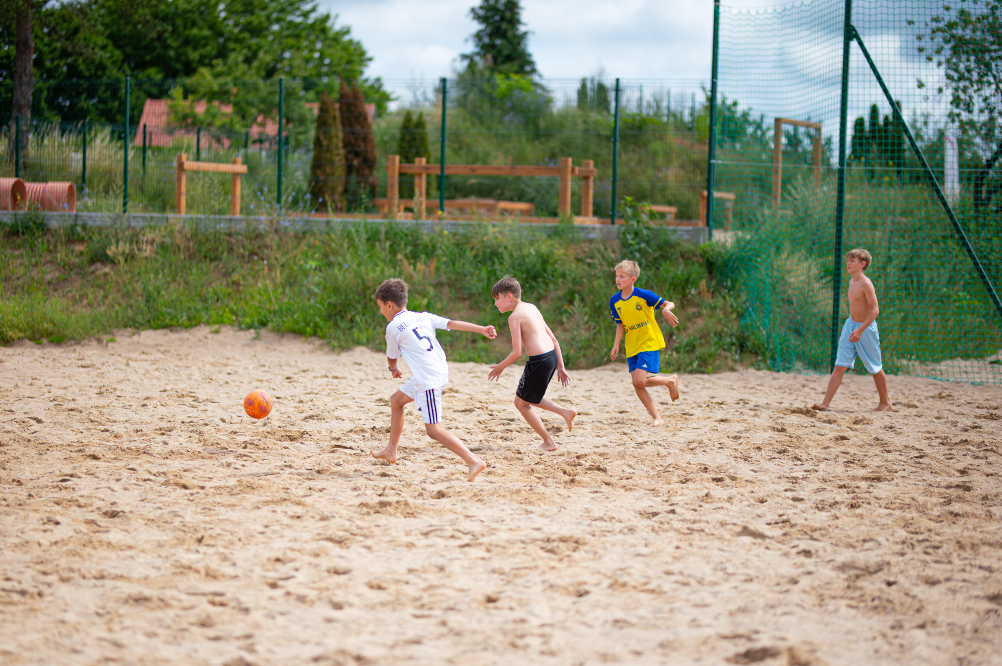 Po obiedzie i chwili odpoczynku od słońca grupy artystyczna, chillowa oraz wodna trafiły na plażę, gdzie zaliczyli ślizgawkę, trampolinę oraz motorówkę. Grupa piłkarska rozegrała sparing z innym obozem, a superowi mieli wybór – mogli grać w paintball/ palanta/siatkówkę i giga siatkówkę.