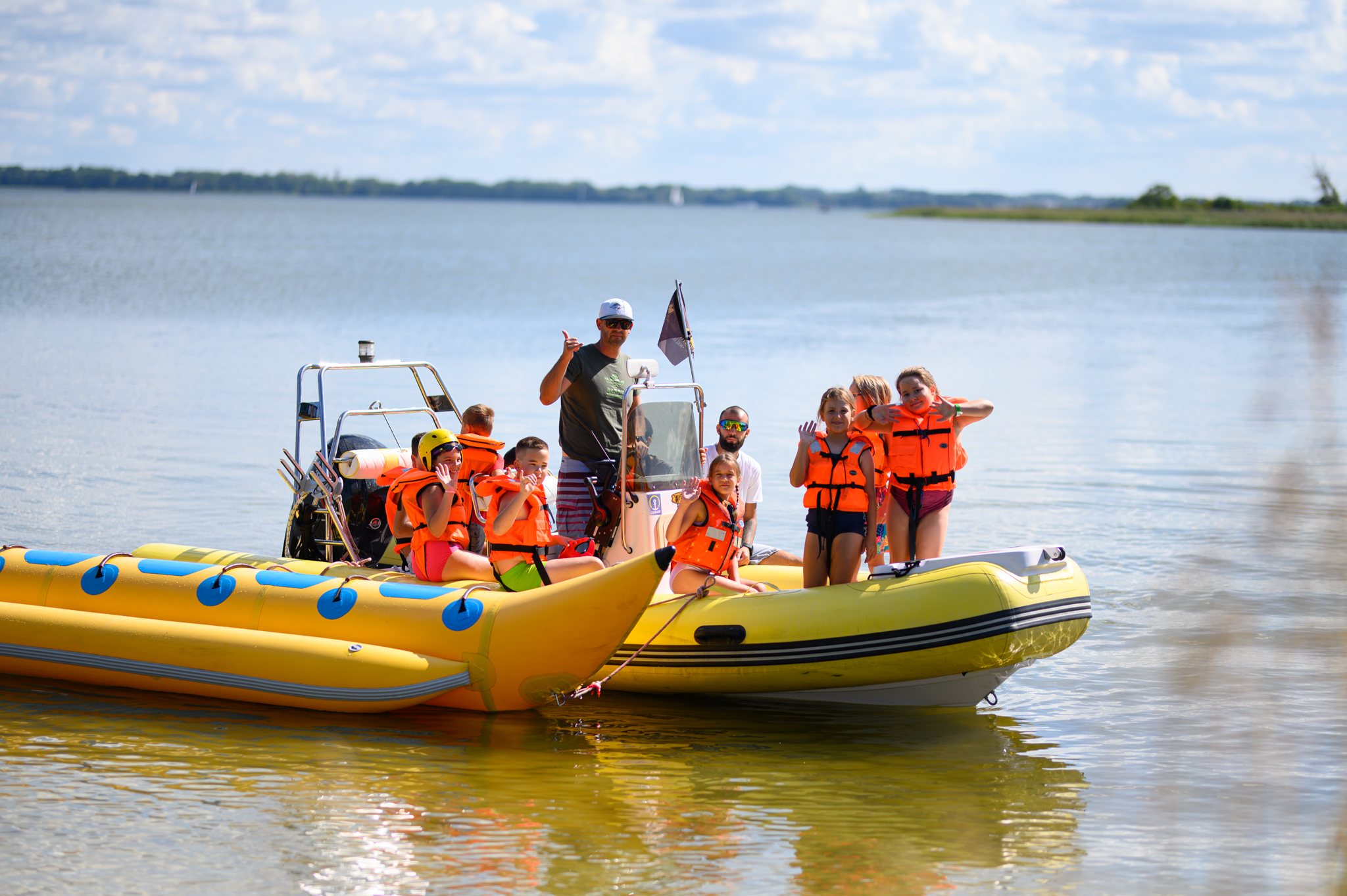 Nasz ostatni obóz się rozkręca! Wczoraj poranek zaczęliśmy od petardy, czyli motorówka oraz banan! Była też wizyta w sklepie. :) Poranek był dla nas naprawdę intensywny, ponieważ były jeszcze SKIM boardy oraz siatkóweczka i kąpiel w jeziorze. Po południu i odpoczynku ruszyliśmy troszkę polenić się na plaży. Pobudować zamki z piasku i zaliczyć pierwsze pływanie na SUP-ach. :)