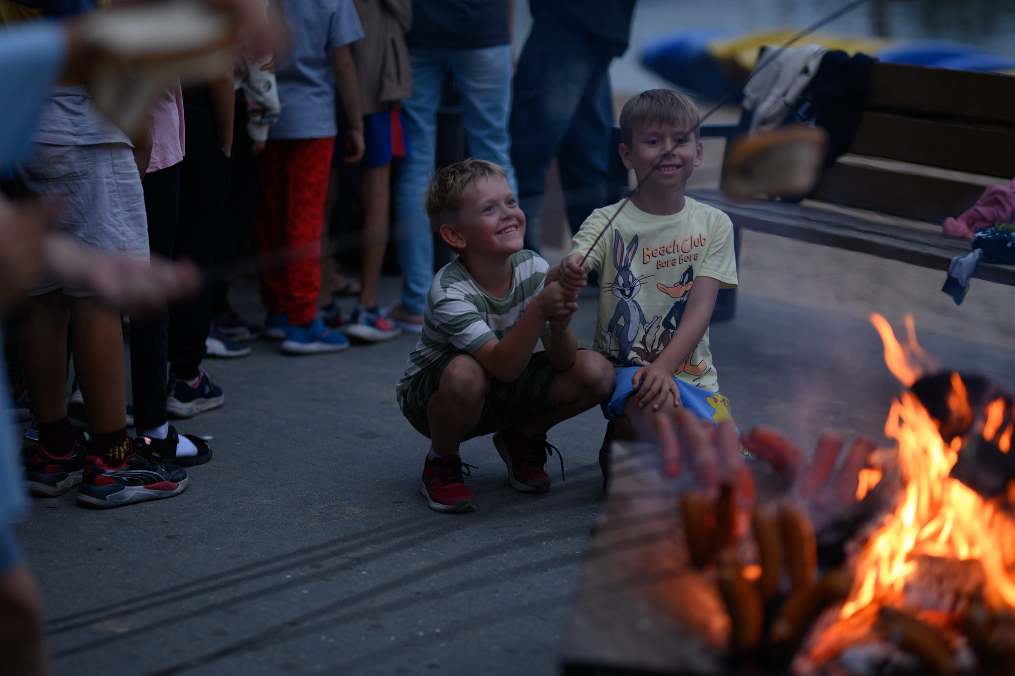 Po obiedzie i budce telefonicznej czekało nas spokojniejsze popołudnie nad jeziorem, gdzie dzieci mogły dowolnie wybierać atrakcje wodne jak kąpiel w jeziorze, kajaki czy SUP-y. Były też wycieczki do barku na pyszne lody i napoje. :)