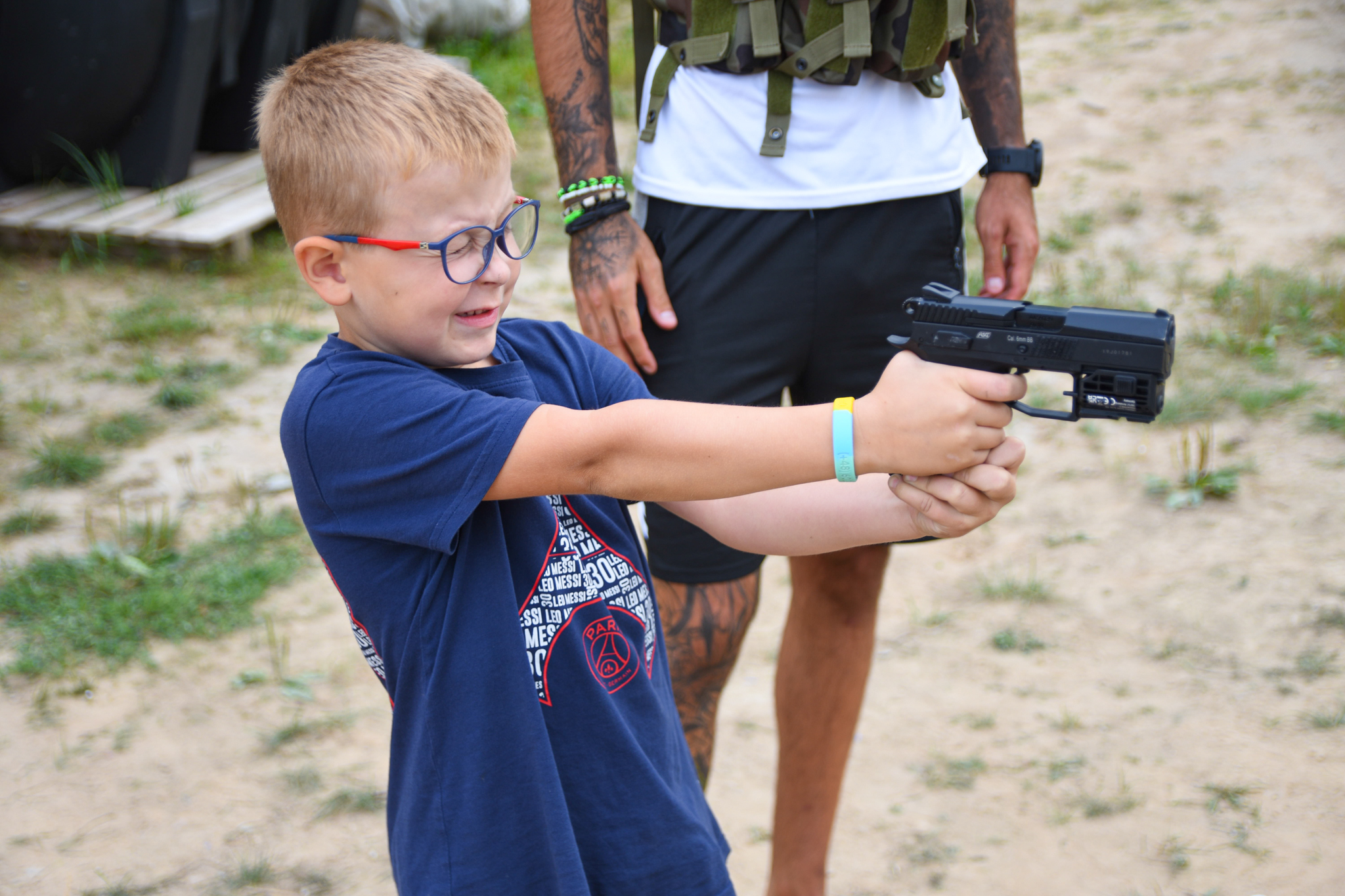Wczoraj też się sporo działo. Rano dzieci w 4 grupach po kolei zaliczały 4 atrakcje. Giga siatkówkę, quad, archery games oraz NERFy. :) Po obiedzie i odpoczynku była plaża oraz dla chętnych i odważnych Paintball! Kiedy naszły chmurki i trochę pokapało z góry, to szybko uciekliśmy do lasu na grę w Policjantów i złodziei. :)