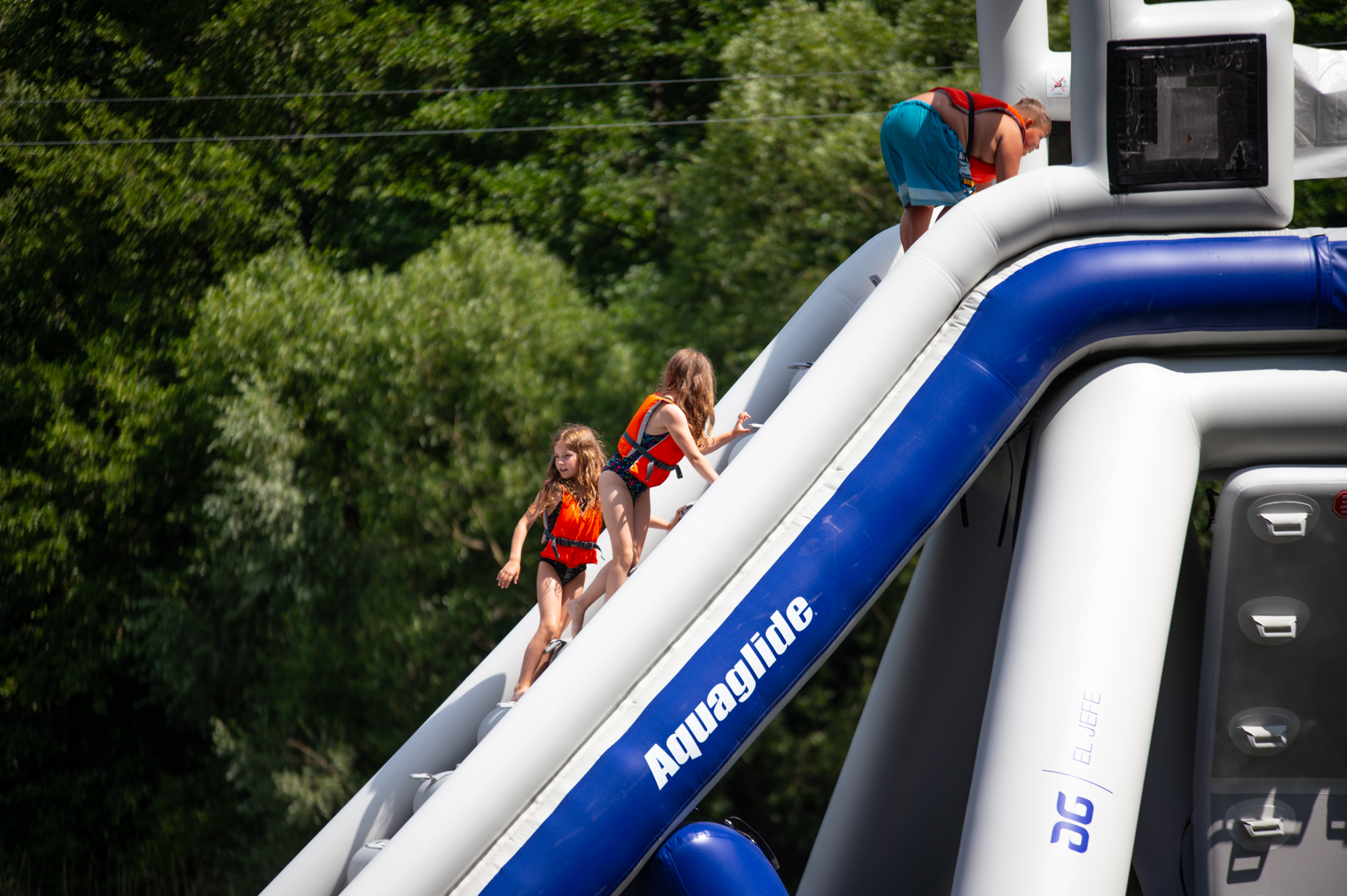 Wczoraj rano całą ekipą wybraliśmy się do Wioski Surfów, gdzie czekały na nas ulubione zajawki wodne dzieciaków: skim, ślizgawka wodna i rowerek ze zjeżdżalnią. Do tego huśtawki, hamaczki, muza i ogólny wakacyjny chillout, a na koniec wspólne colorphoto i kąpiel w jeziorze. ???? Pogoda na szkolenie dla Windsurferów była idealna – słońce i wiaterek, więc złapali dechy, żagle i wskoczyli na wodę – robią mega postępy!